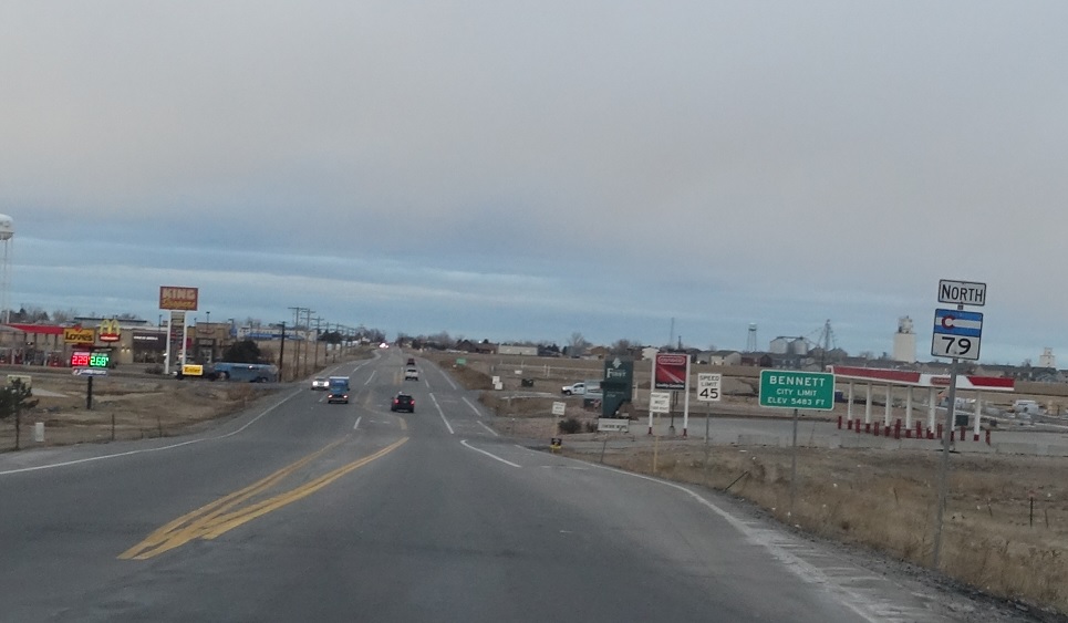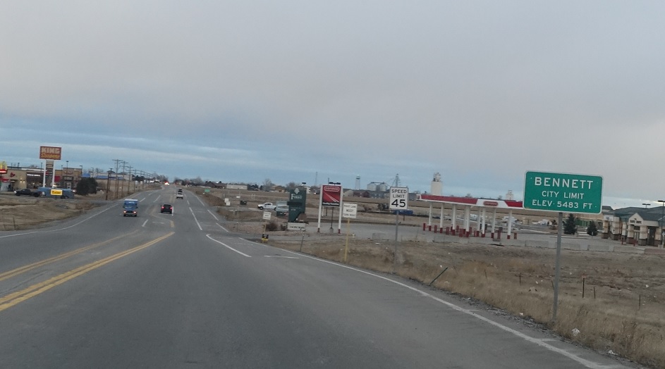 Reassurance shield after the I-70 interchange as we enter Bennett.