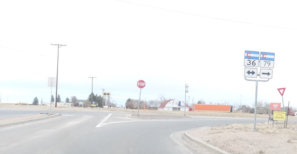 About a mile later, we’ll approach SH-36, which is naturally the old alignment of US-36/40/287. Turn right for 36 east and 79 north, which run concurrent for a few blocks. Turn left for 36 west.