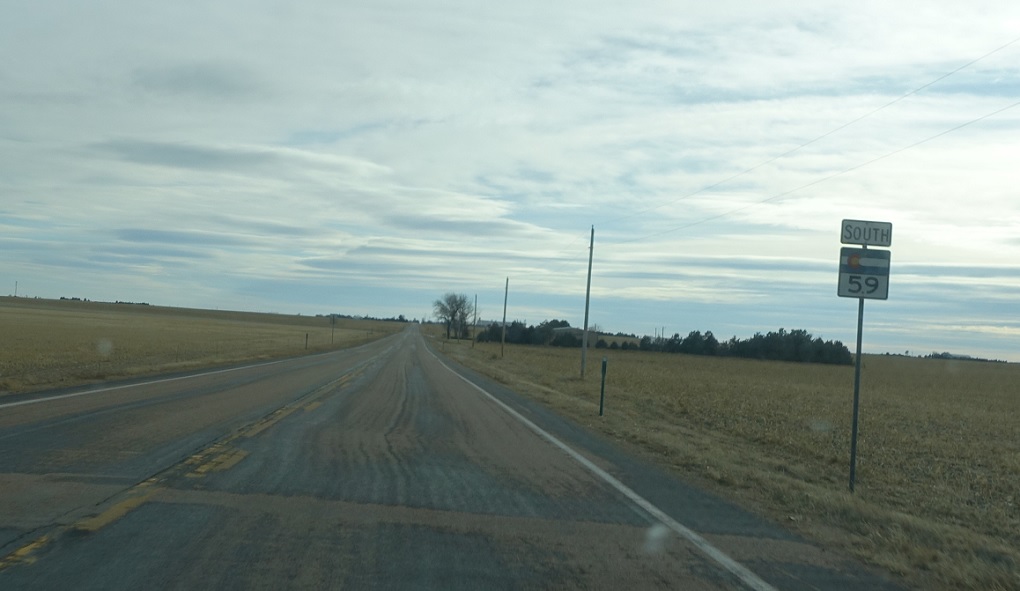 Reassurance shield a couple miles later. SH-59 looks a lot like this all the way to I-70.
