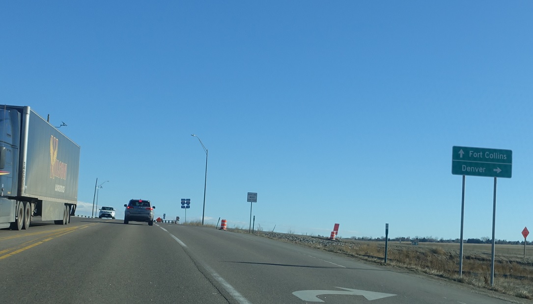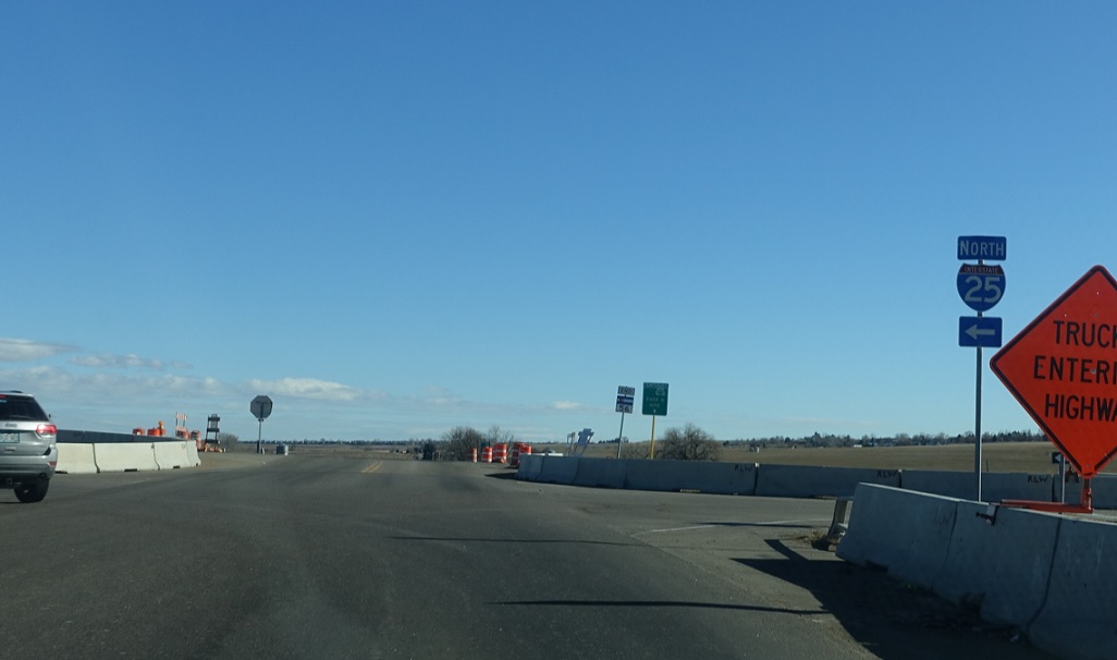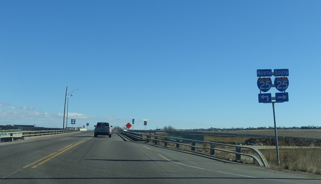 A couple miles later, we’ll approach I-25/US-87. Follow 25/87 south to Denver.