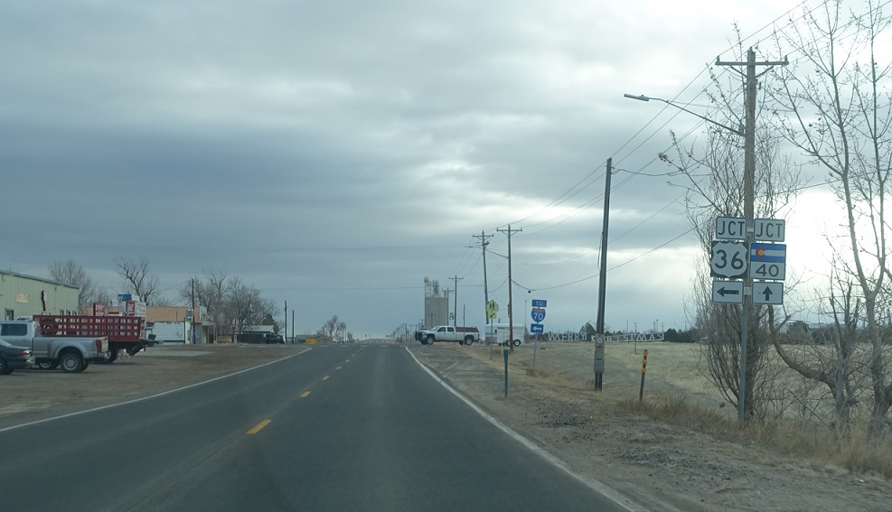 A few miles later, we’ll enter Byers. SH-36 turns left to connect back with US-36, while SH-40 takes over for the old routing of US-40/287 down to Limon.