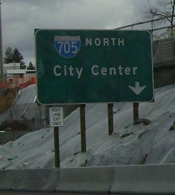 Exit for I-705. All of the signs below are gone as they completely reconfigured this interchange.