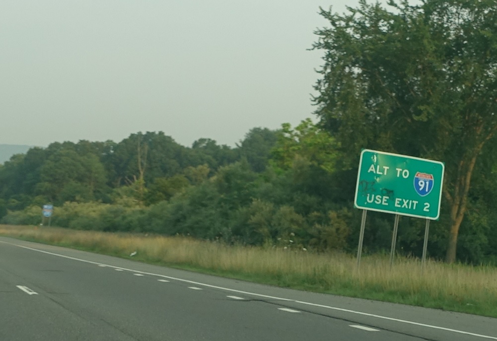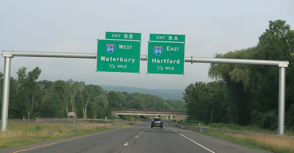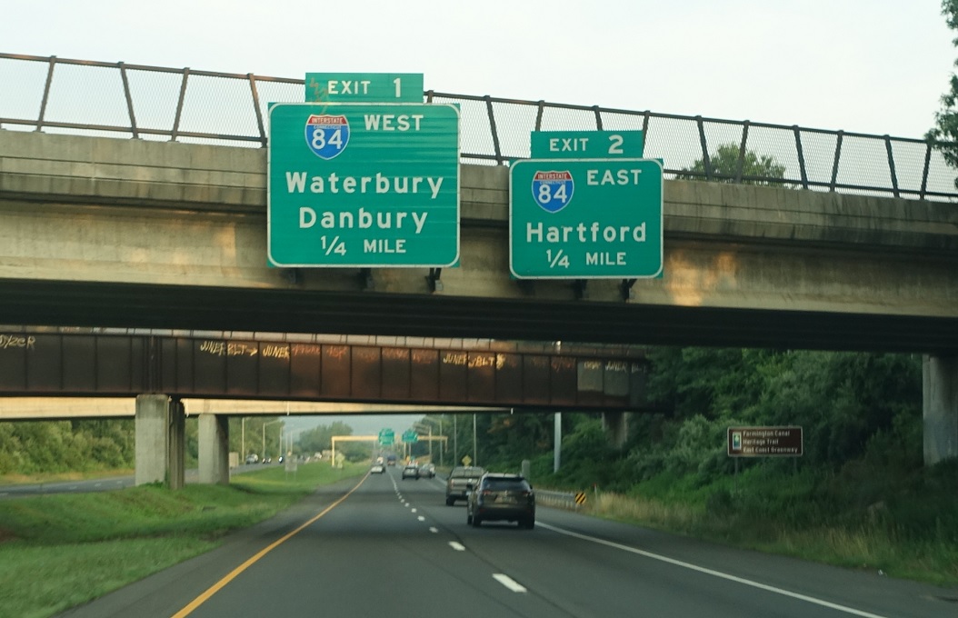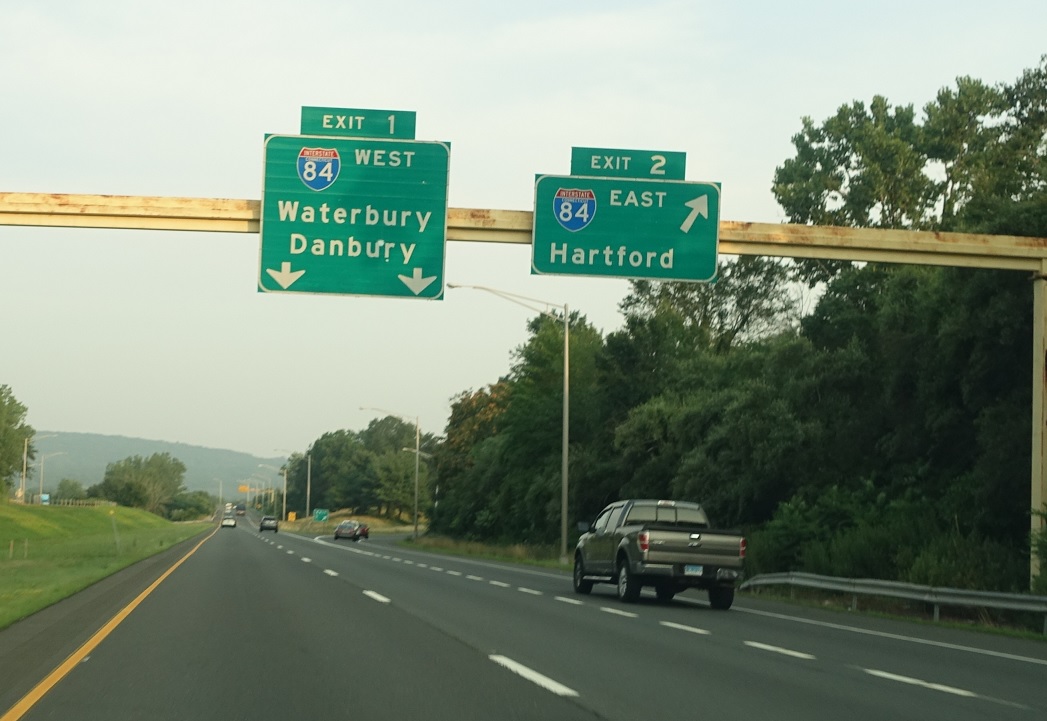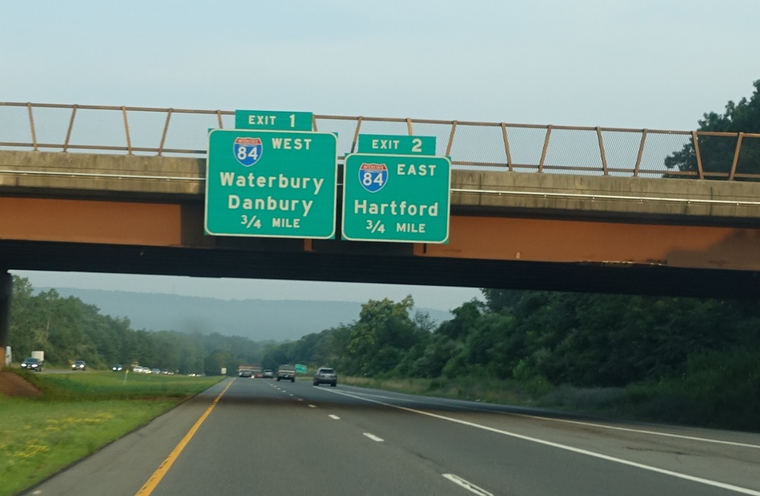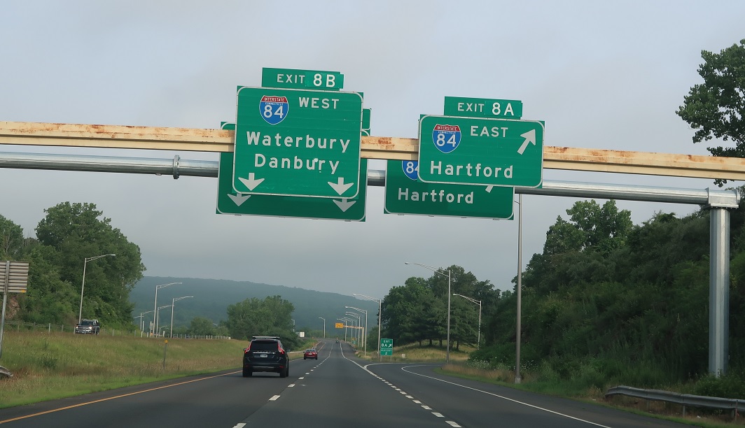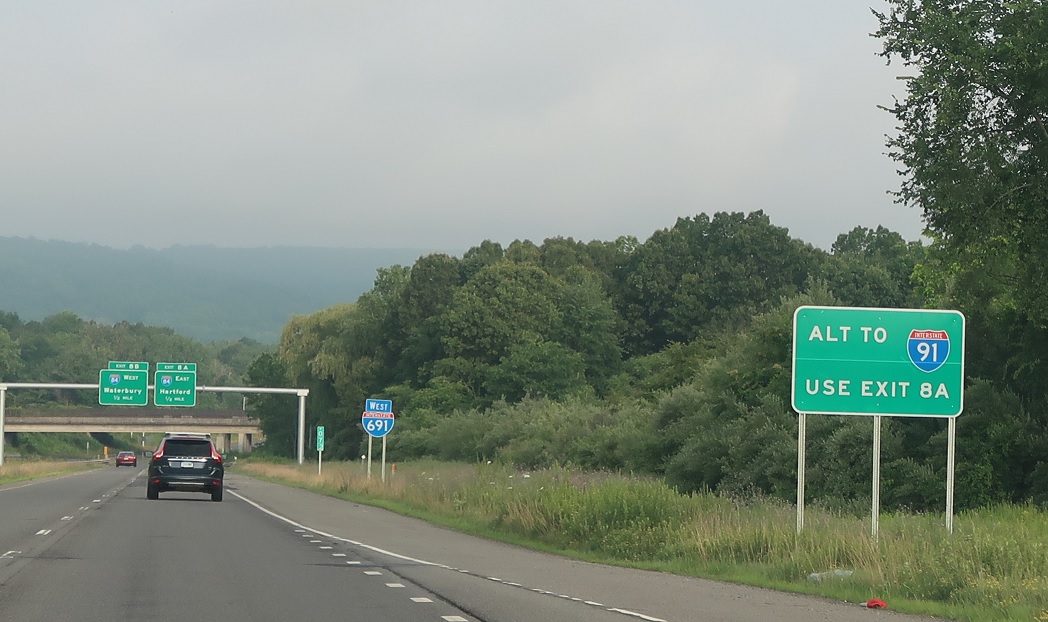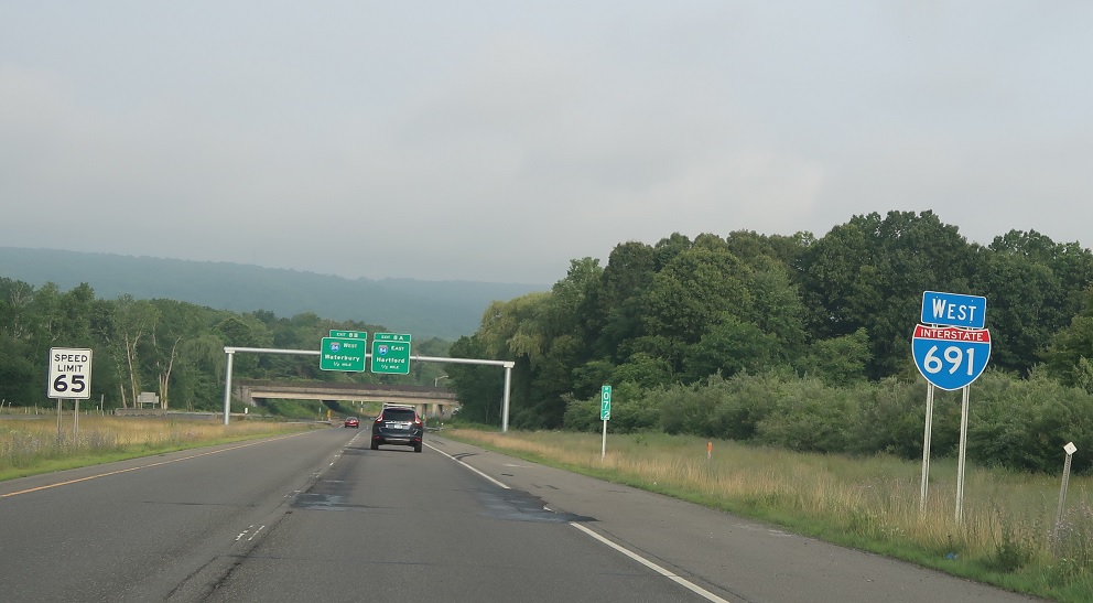 Exit for I-84 east. Keep left for I-84 west. I-691 ends. I-84 has access to CT 322 in this same interchange, but there is no access to 322 from 691.