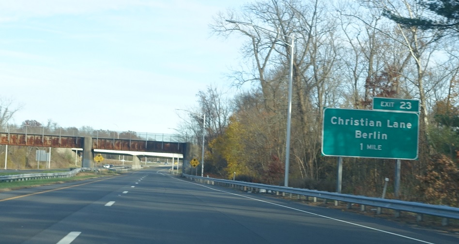 After CT 71, we’ll get advance notice for Route 9’s exit 23. As we come around the corner in the distance we’ll merge onto 9 south. There is no access to 9 north from here.