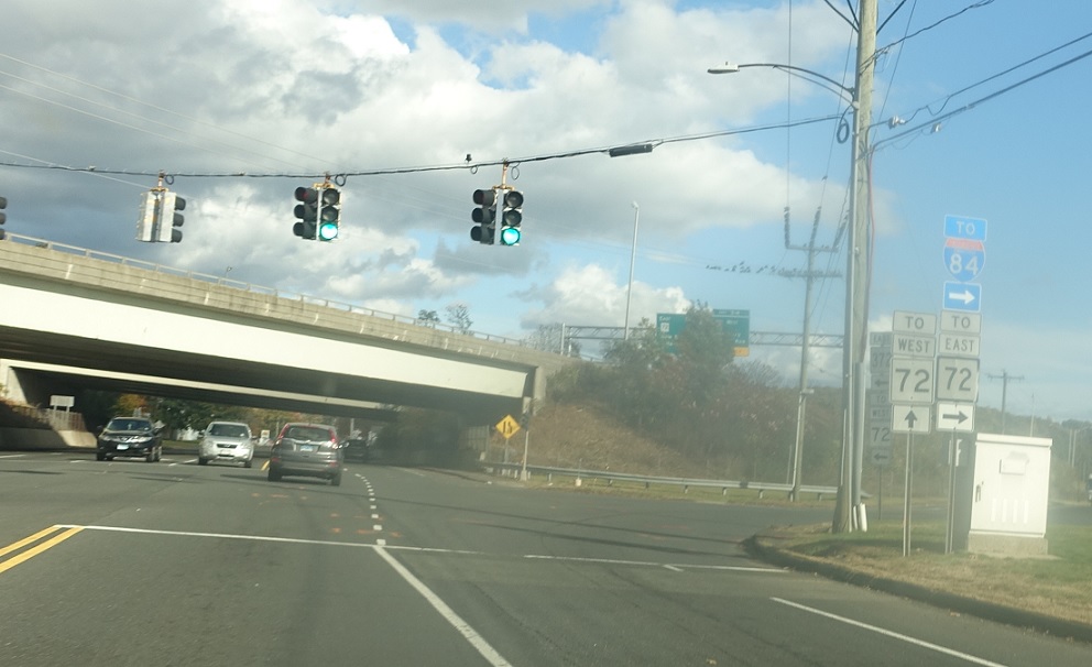 As we cross under CT 72, we’ll approach SR 511. Turn right for 511 east to SR 72 and I-84. Turn left for 511 west back to CT 10. Stay on 372 for 72 west.