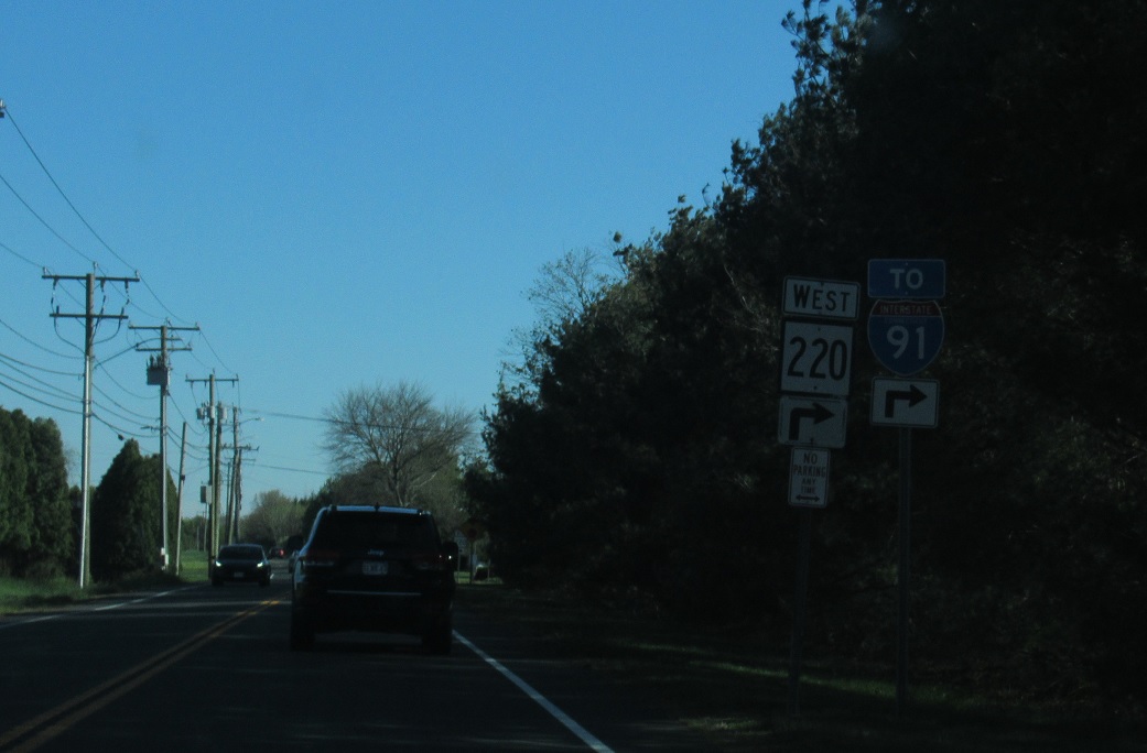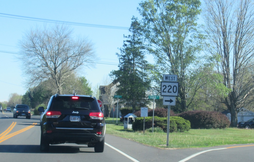 No reassurance shield as we enter the Nutmeg State. A mile into Connecticut, we’ll approach SSR 404 where CT 220 turns right.