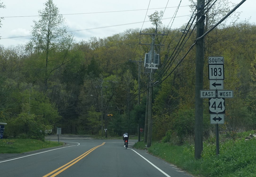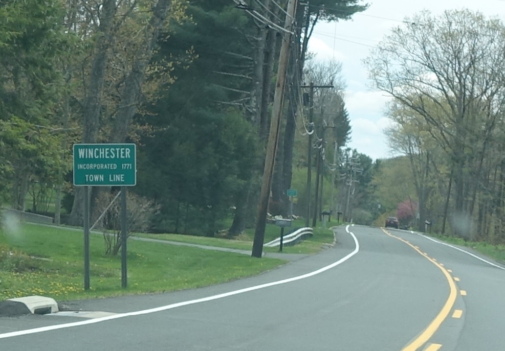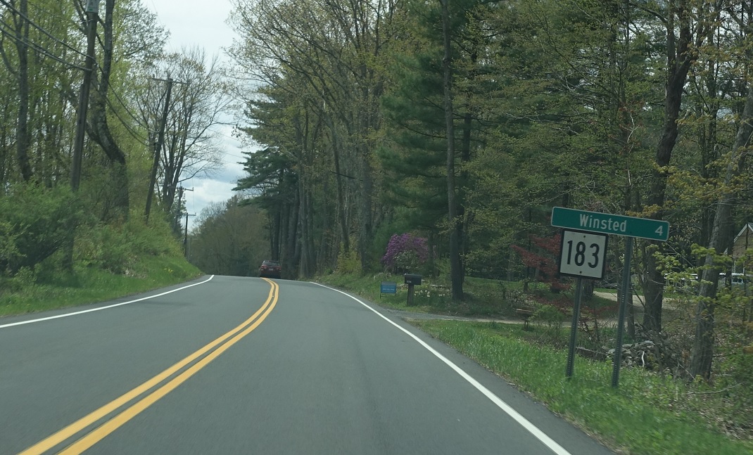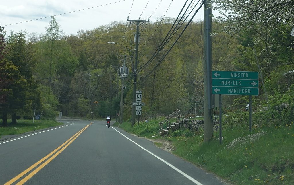 A couple miles later, we’ll approach US 44 as we enter Winsted. Follow 44 east/183 south towards Hartford and Winsted. 44 west goes to Norfolk.