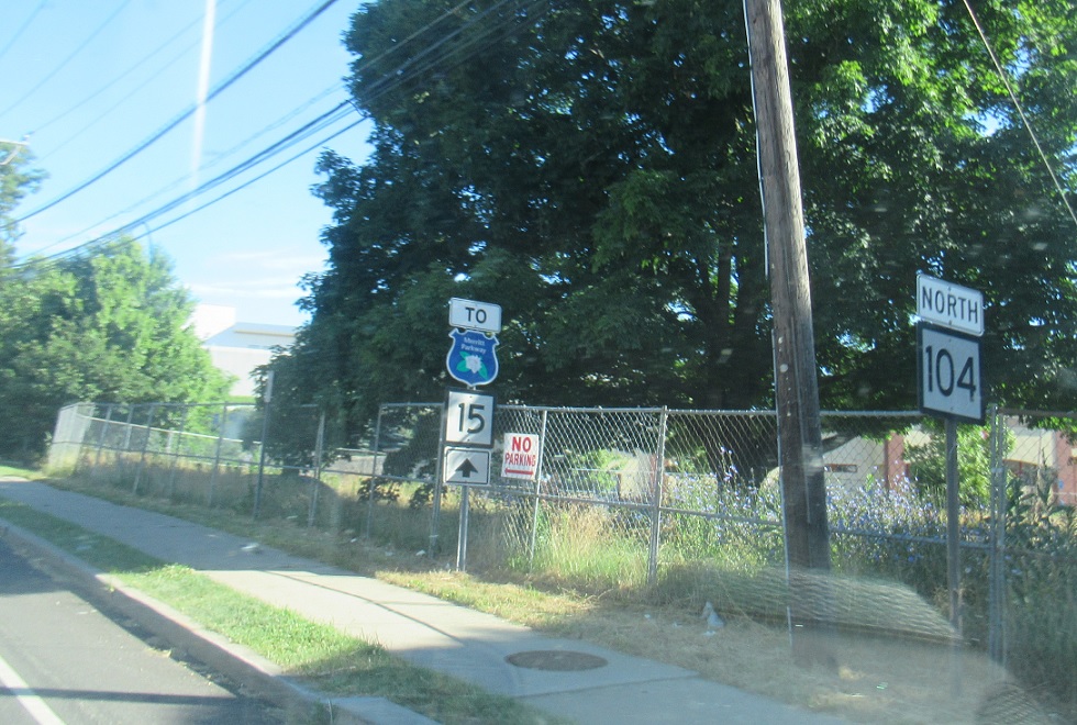Reassurance shield as CT 104 begins. 104 heads to the Merritt Parkway.