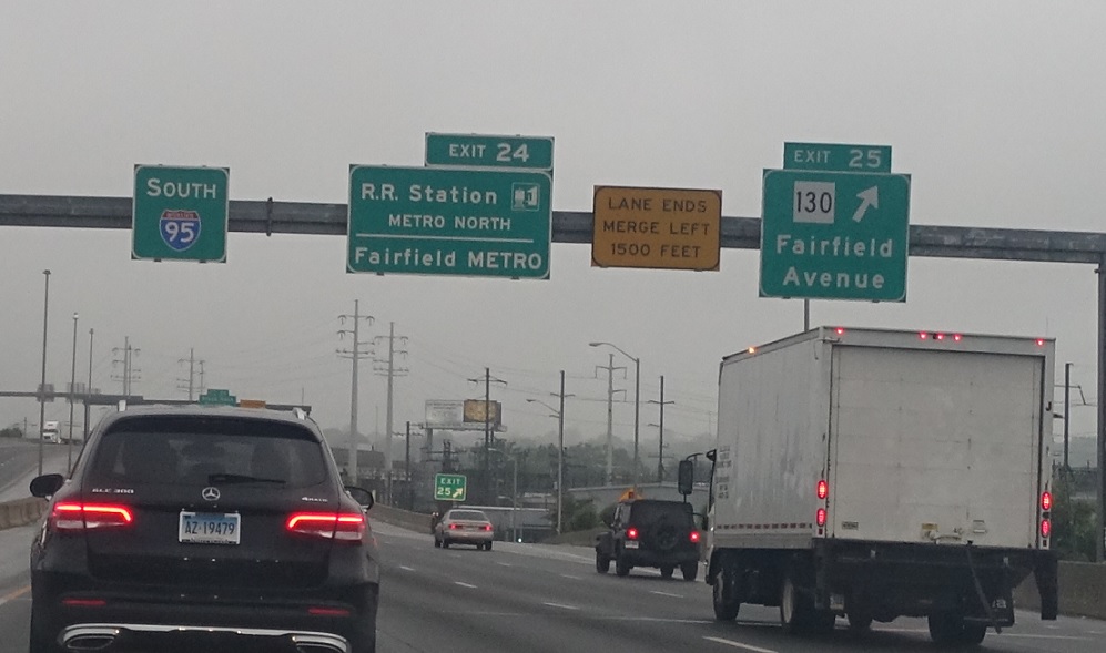 Exit for CT 130/Fairfield Ave. Stay on the interstate for I-95 south (shockingly).