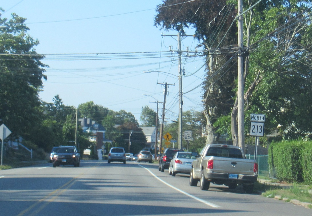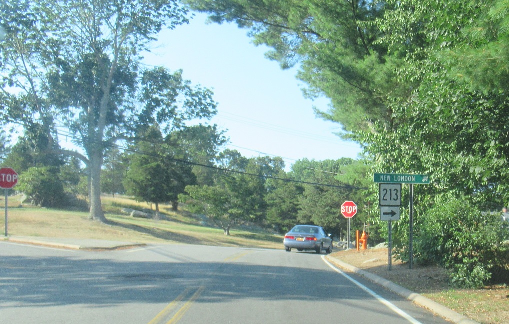 Just after that, we’ll enter New London and CT 213 will turn left again to head north towards downtown.