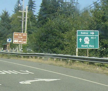 Turn right to head into Sekiu, or stay straight for SR 112