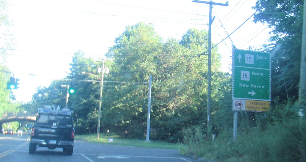 Just after the CT 136 split, we’ll approach CT 15. Turn right for 15 north to New Haven.