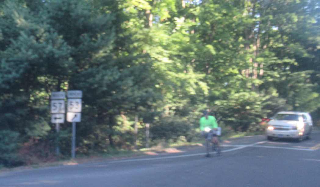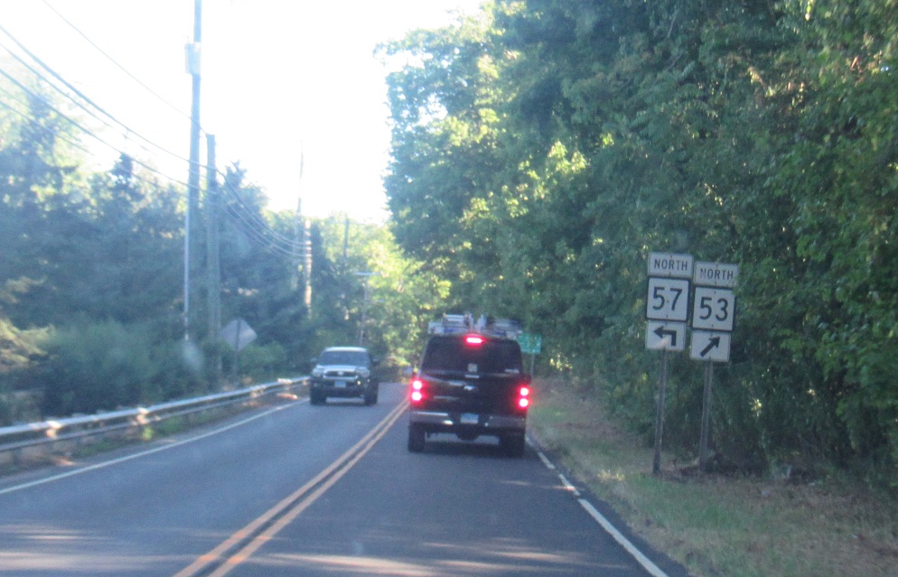 .8 miles later, keep right to stay on CT 53 north. Keep left for 57 north.