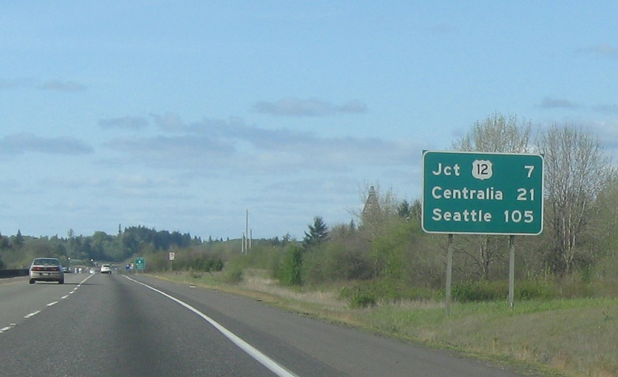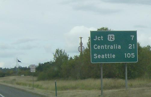 JCT US-12 coming up in 7 miles, a major thru route east to Yakima. Westbound joins I-5