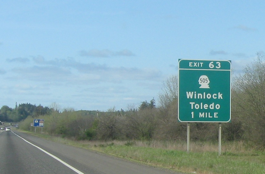JCT SR 505 coming up in a minute, serving as both the Toledo-Winlock road and a connector to St. Helens for southbound traffic