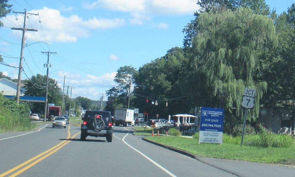 A mile after that, we’ll approach US 7. Follow 7 south to Wilton and 7 north to Danbury and Brookfield.