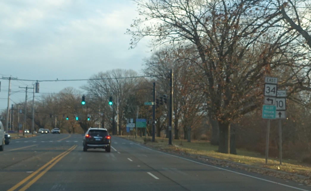 Turn left for CT 34 east to I-91. Stay on CT 10 south for I-95.
