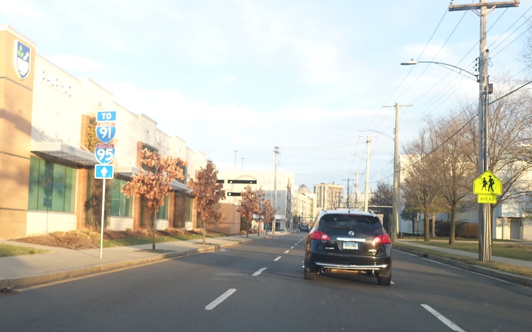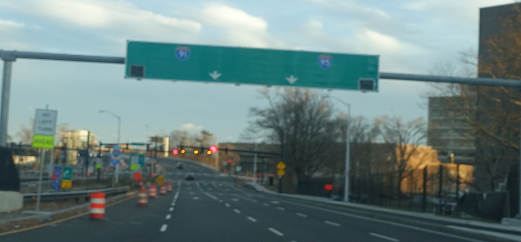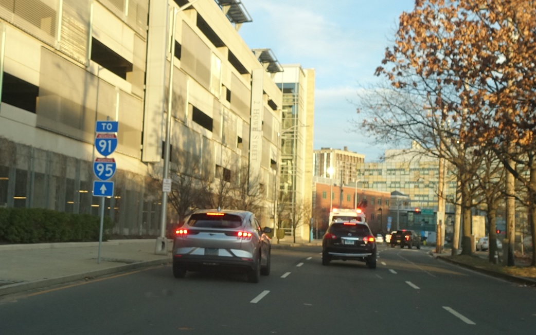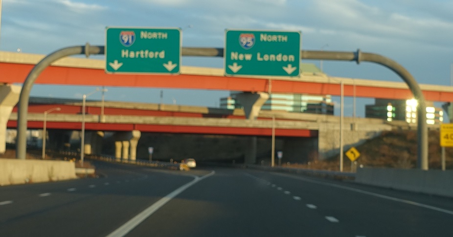 As we head out of downtown, we’ll approach both directions of I-95 and I-91 north. CT 34 bumps into I-91 in the I-95 interchange at its southern terminus.