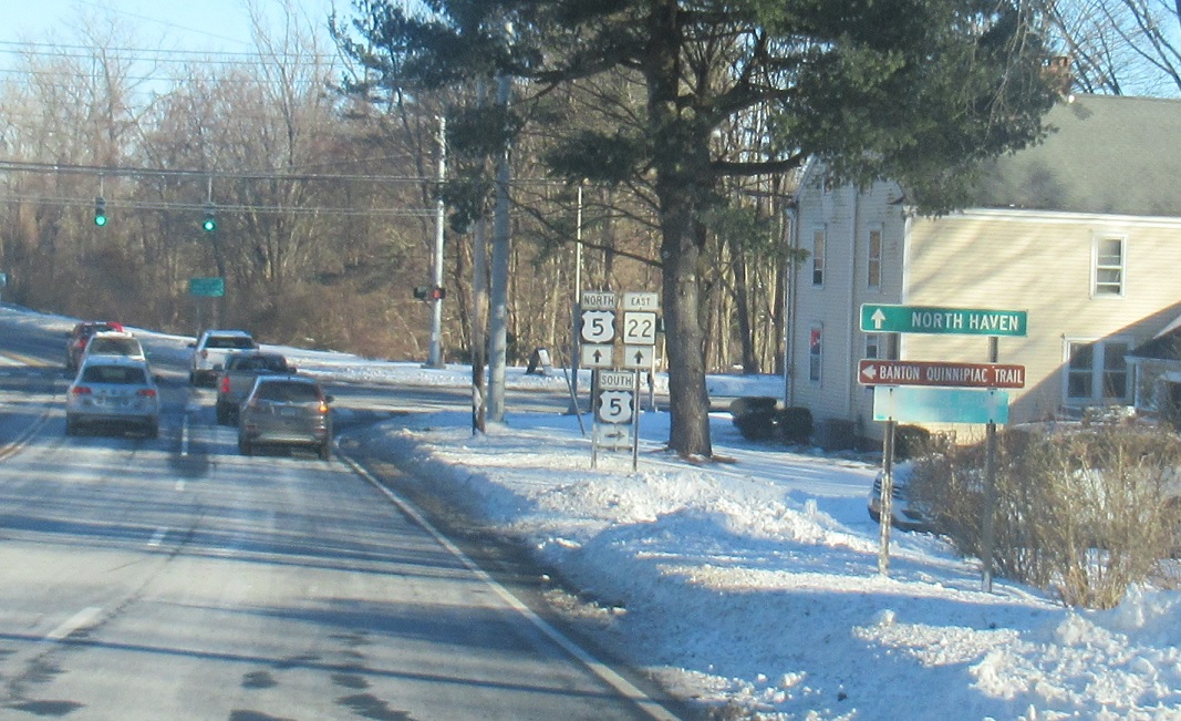 CT 22 east will join US 5 north over the interstate. Follow the two routes into downtown North Haven.