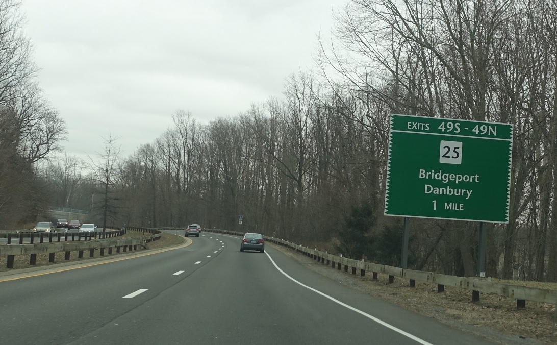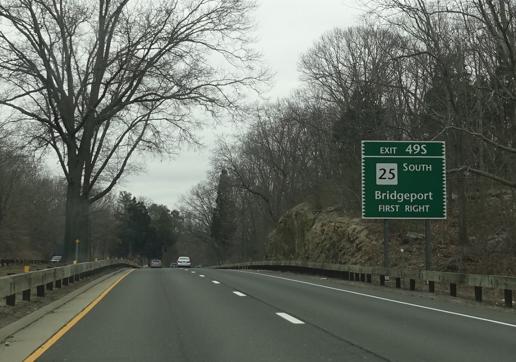 Up ahead, we’ll approach the CT 25 freeway, which heads south to Bridgeport.