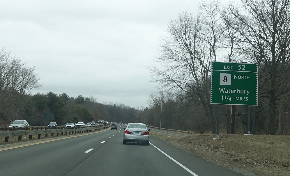 1.25 miles to CT 8 as traffic from CT 127 merges on.