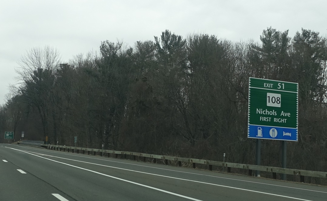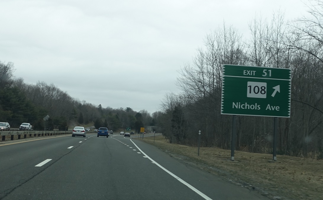 Immediately after CT 127, exit for CT 108/Nichols Ave.