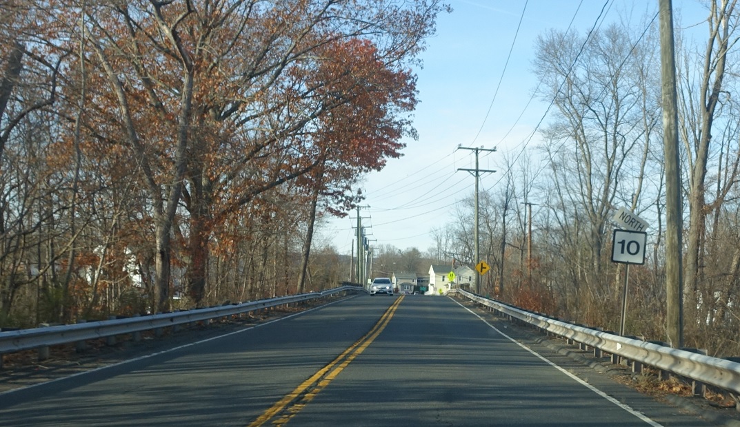 Reassurance shield after the fork as we cross over CT 322. Up ahead, we’ll approach unsigned SR 509, which also provides a connection to CT 322.