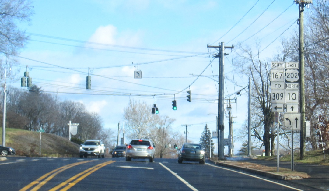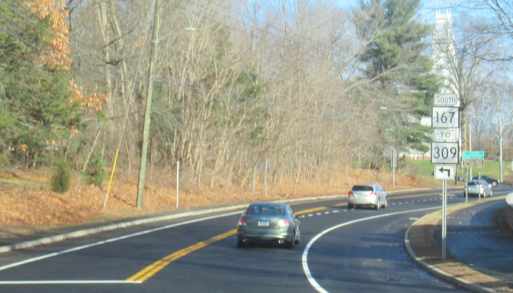 Turn left for CT 167 south to CT 309. Stay straight for US 202/CT 10 north/east.