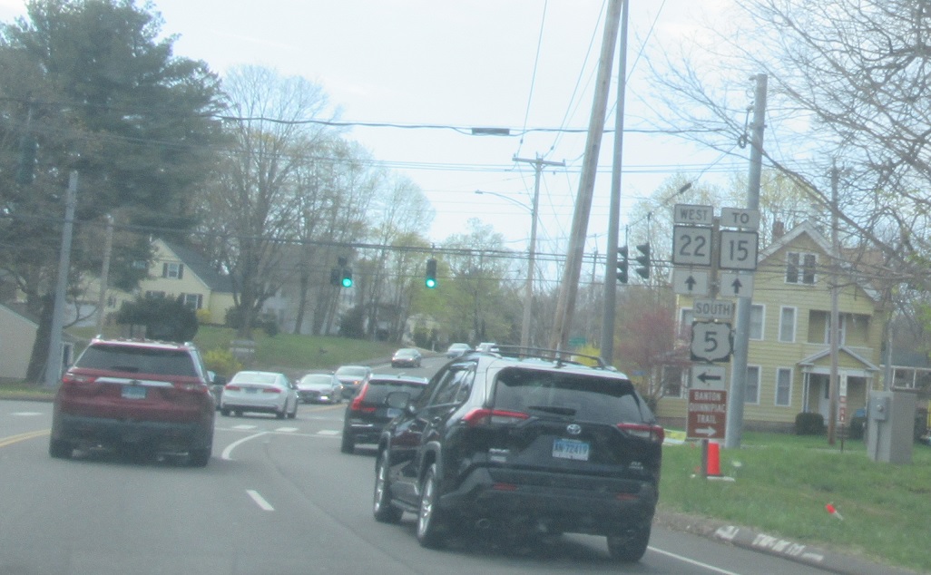 After the turn to I-91 south. Stay straight to stay on US 5 south. CT 22 is not mentioned here even though it is actually the route which stays straight ahead.
