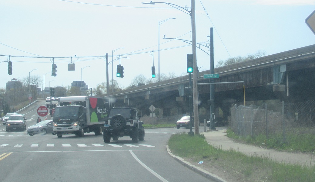 US 5 ends without fanfare a few blocks later at the ramp from I-91 north in the background.