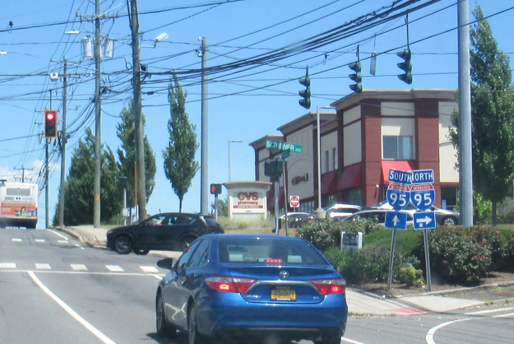 A mile later, we’ll approach another I-95 junction. Turn right for Scribner Avenue to I-95 north.