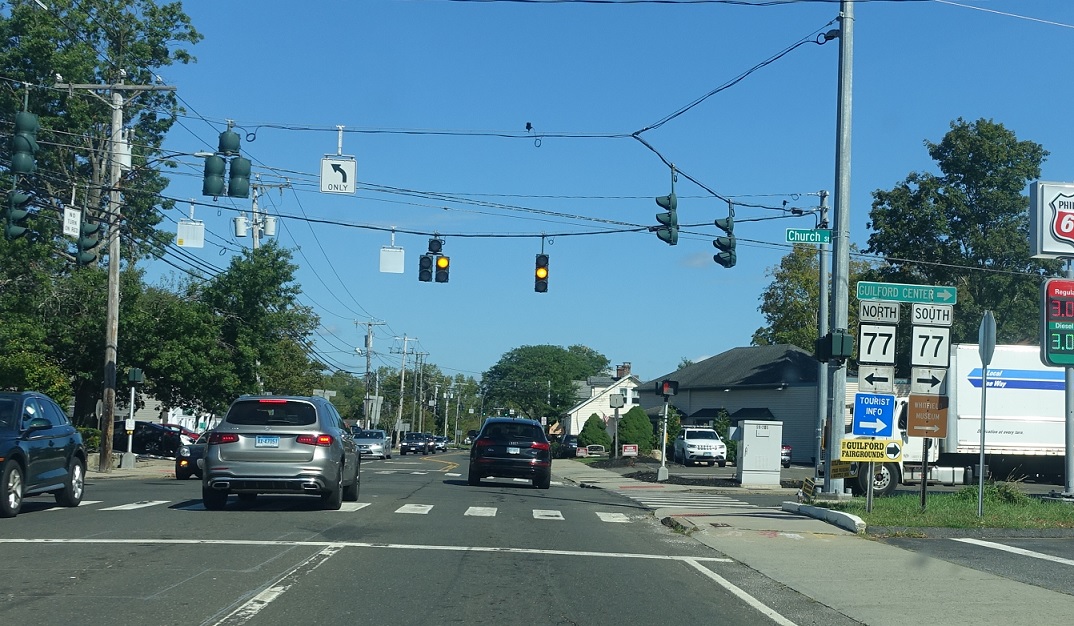As we enter downtown Guilford, we’ll approach CT 77 in a block.