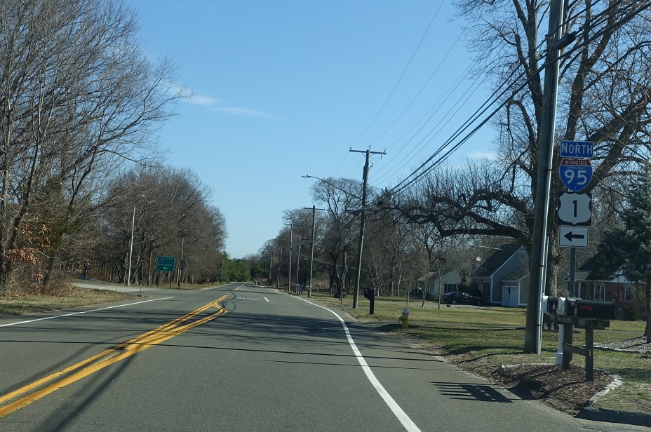 Turn left ahead for US 1 north, which joins I-95 north over the Connecticut River.