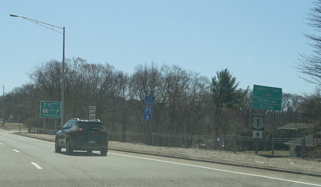 As we approach CT 349, stay on US 1 north for I-95 north.