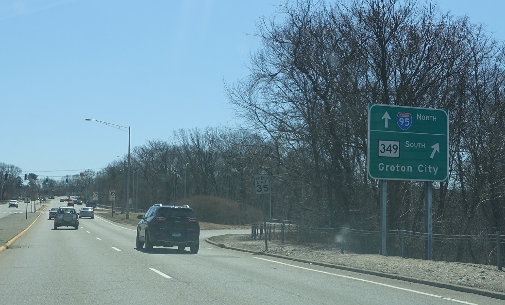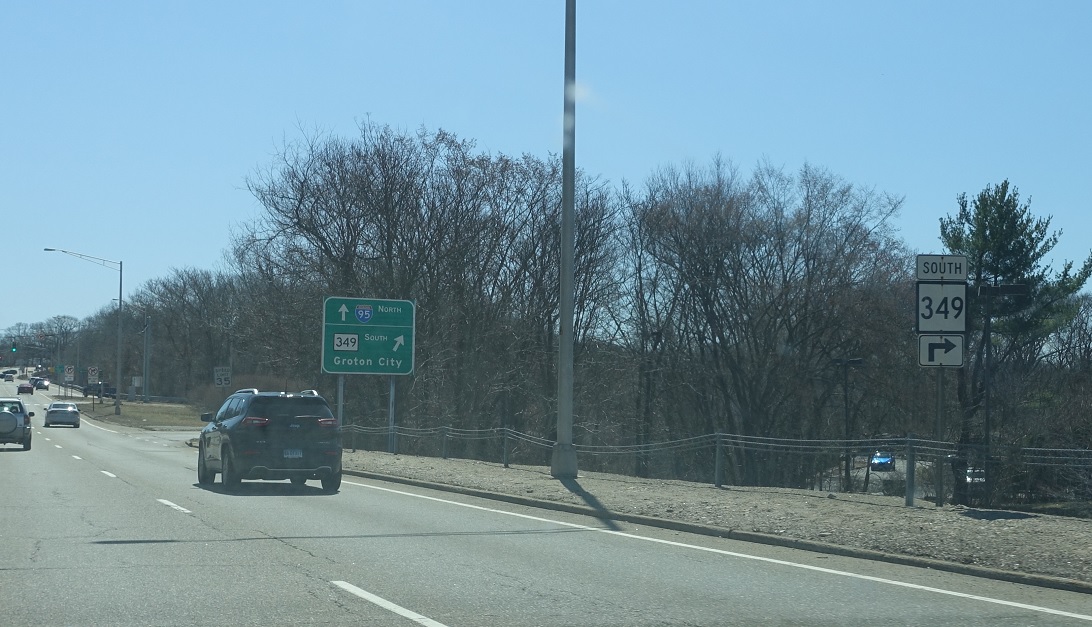 Exit right for CT 349 south to Groton City. Stay straight for CT 349, which is effectively just a ramp to I-95 north.