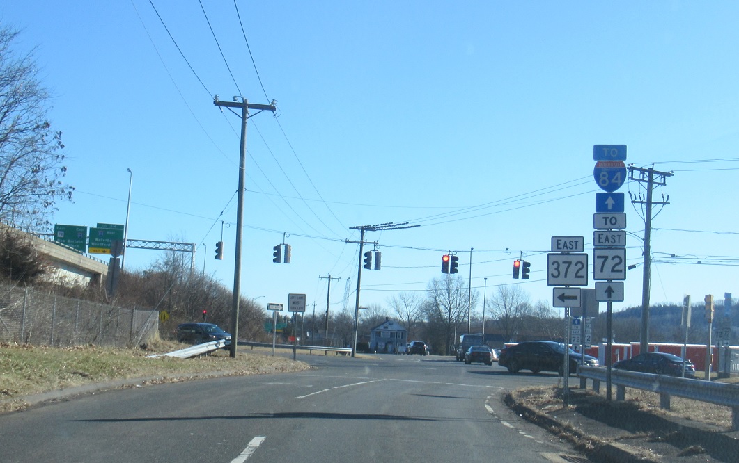 A tenth of a mile later, we’ll approach CT 372. Turn left for 372 east. Stay straight to follow SR 511 to a ramp to the CT 72 east freeway, which connects to I-84.