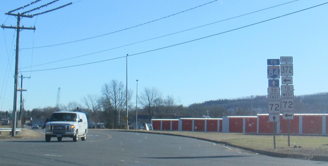 No signage as SR 511 begins – the first segment of 511 between 10 and 372 is one way eastbound. It facilitates movements from CT 10 south to CT 72 and 372 east.