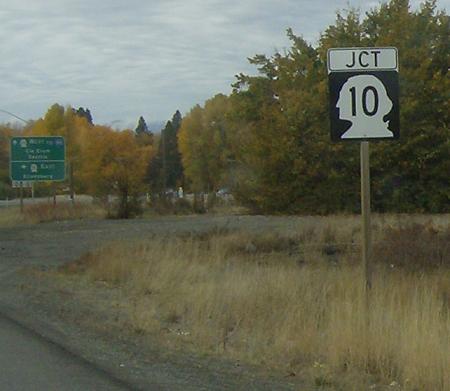 Turn left for SR 10, the last remaining signed fragment of old US-10. SR 970 will take the old US-10 alignment for the remainder of the route to I-90.