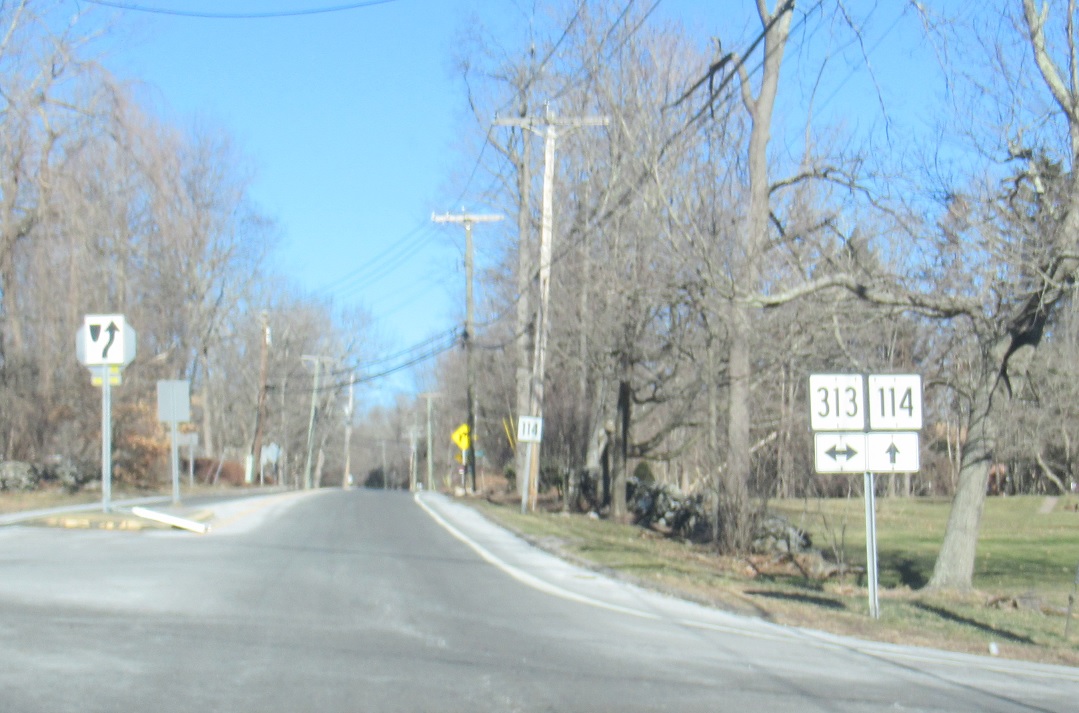 A mile later, we’ll approach CT 313. Follow 313 east to New Haven, though you should have used US 1, CT 34, or CT 243 if that’s where you were going. Stay on 114 north for Woodbridge center. Turn left for 313 west to Seymour.