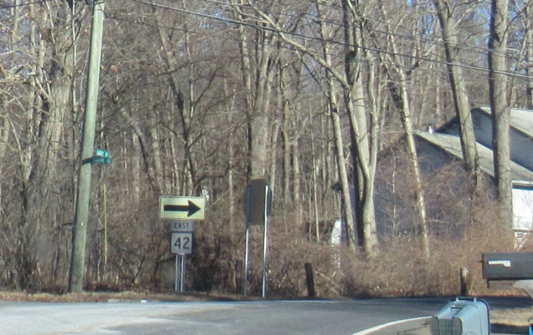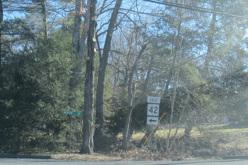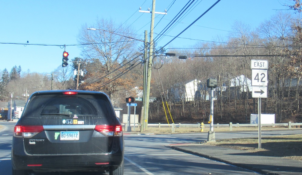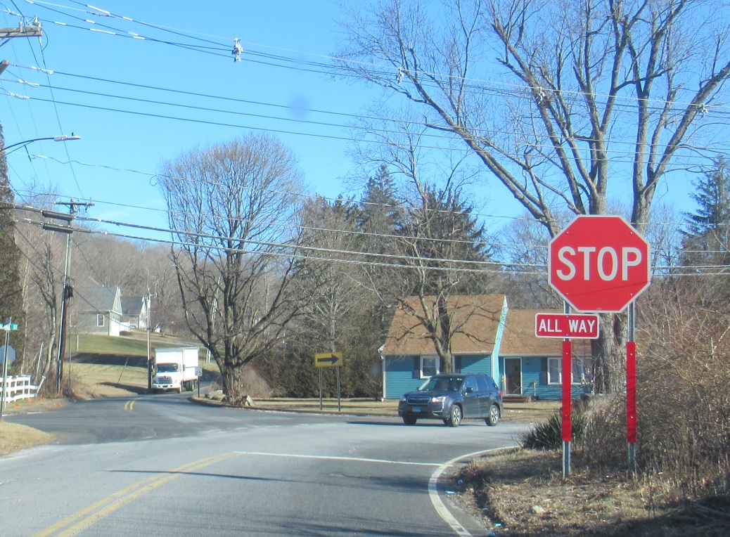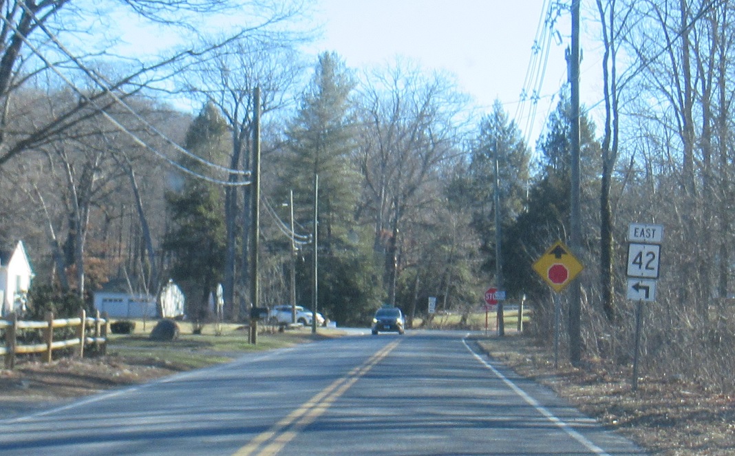 Shortly thereafter, CT 42 stops and bears right without signage.