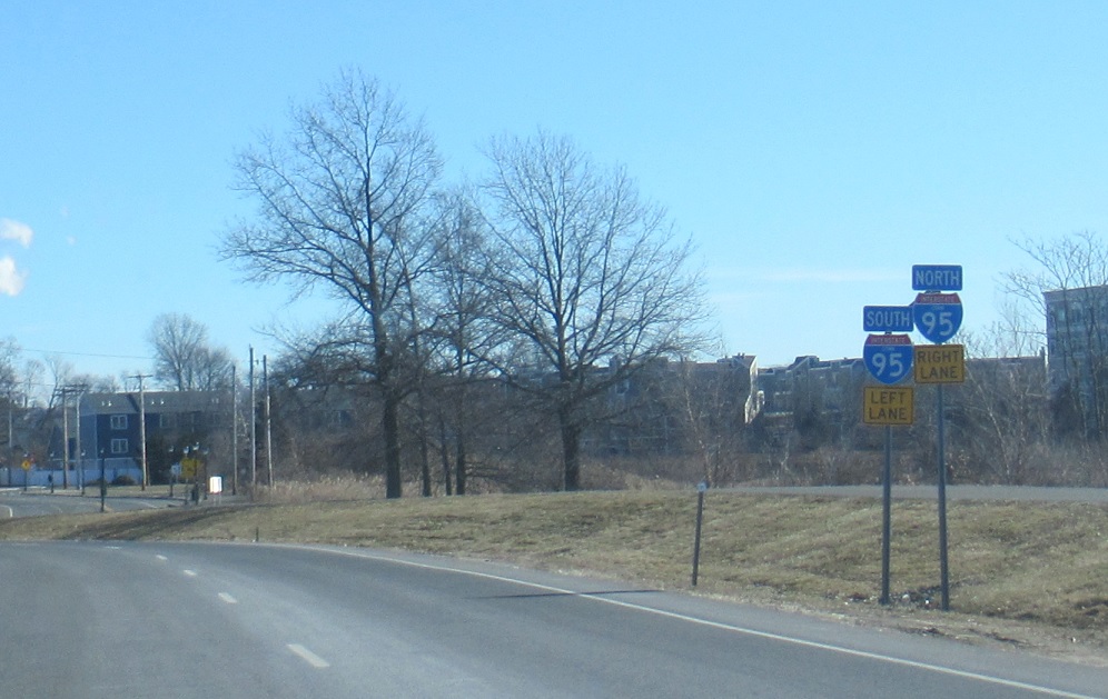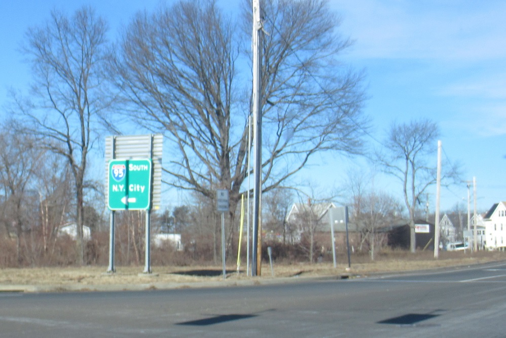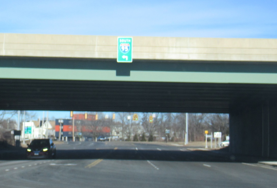 Keep right for I-95 north and left for I-95 south. Note the state name in the interstate shields is abbreviated to “Conn”