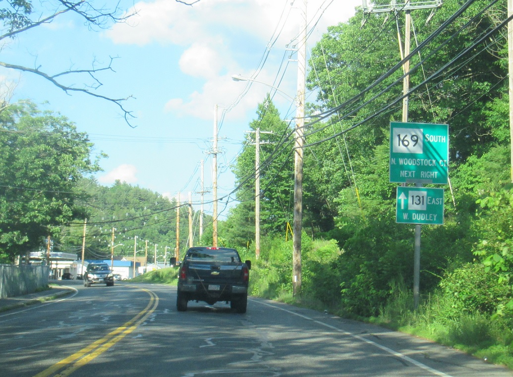 Turn right for 169 south to Woodstock. Stay on 131 for Dudley Mass. via Quinebaug/North Woodstock CT.