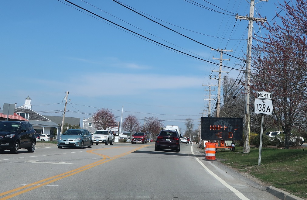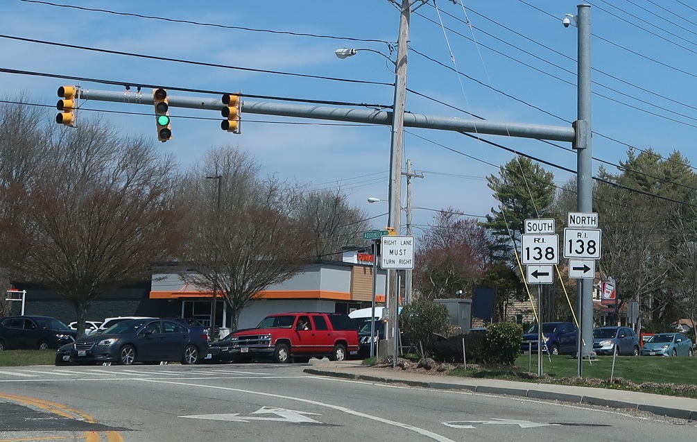 Shortly thereafter, we’ll approach RI 138. Turn right for 138 north and left for 138 south. 138A ends.
