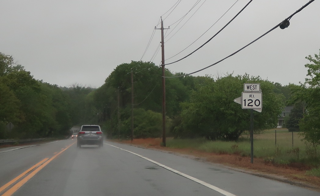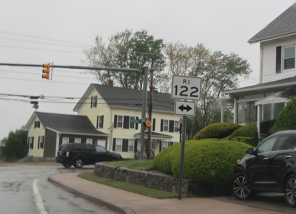 A little over a mile later, we’ll approach Route 120’s western terminus at RI 122. Turn left for 122 south and right for 122 north.