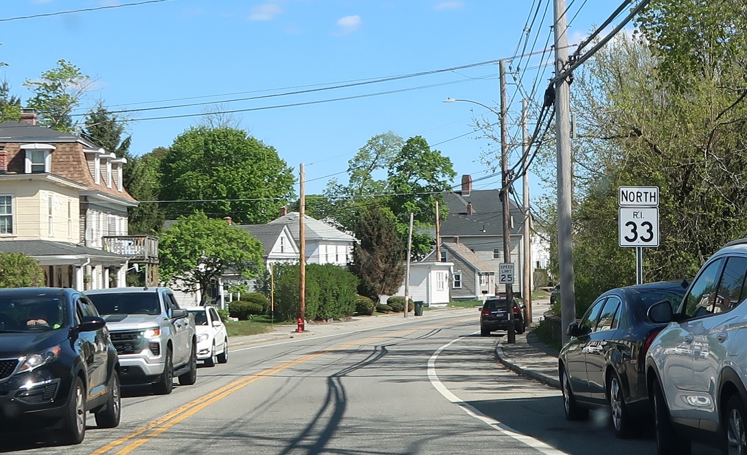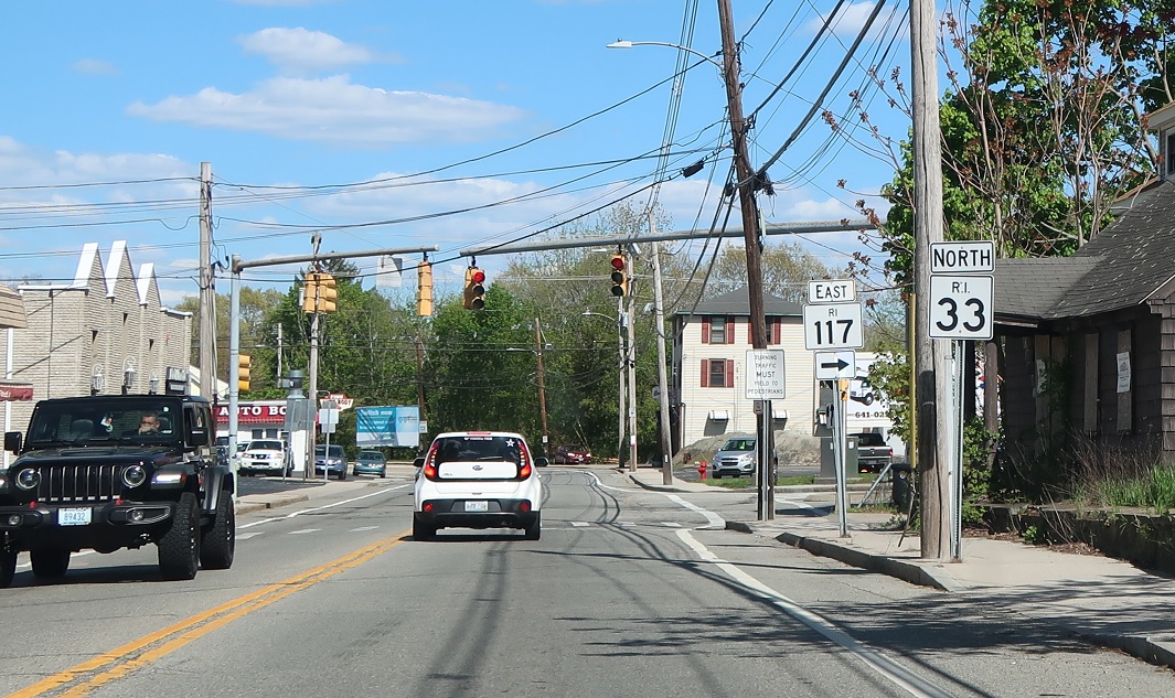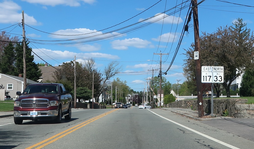 Shortly thereafter, RI 117 will split to head east. This junction is weirdly signed – stay straight to stay on 33 north.