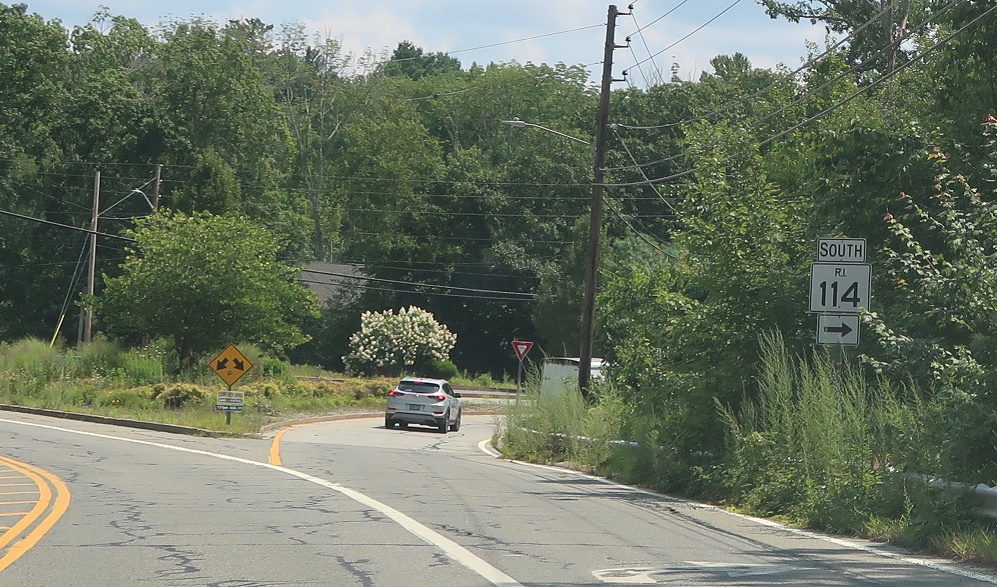 In two attempts to get a good picture of this I failed – as we head out of Woonsocket, we’ll approach RI 121. Keep left ahead for RI 121 north, a quick connector to Massachusetts.