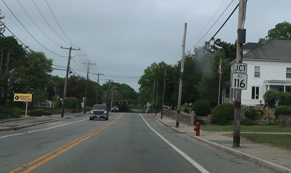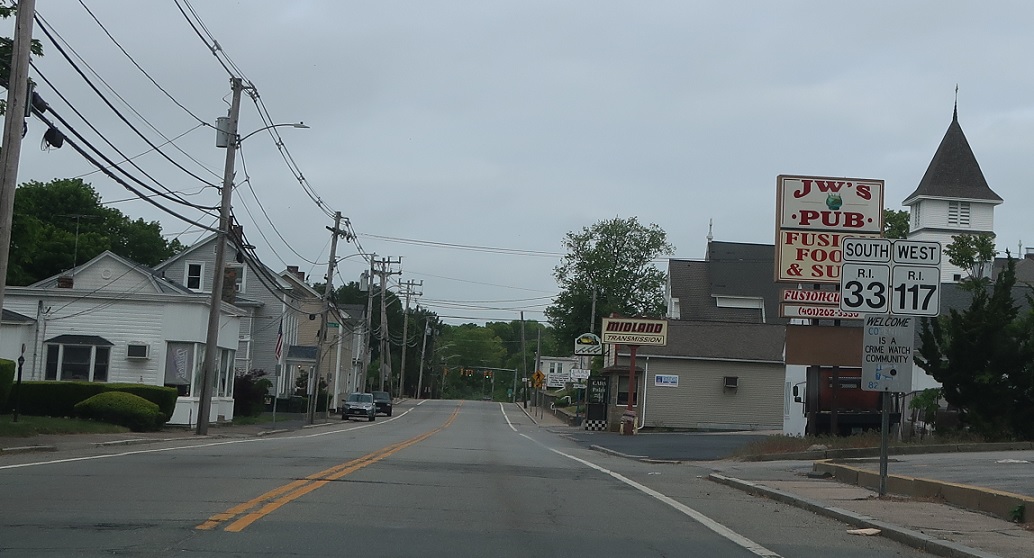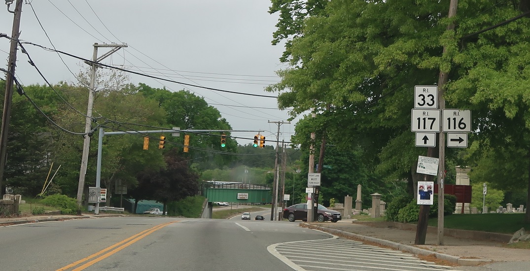Turn right for RI 116 north. RI 33 south and 117 west remain concurrent and continue straight.