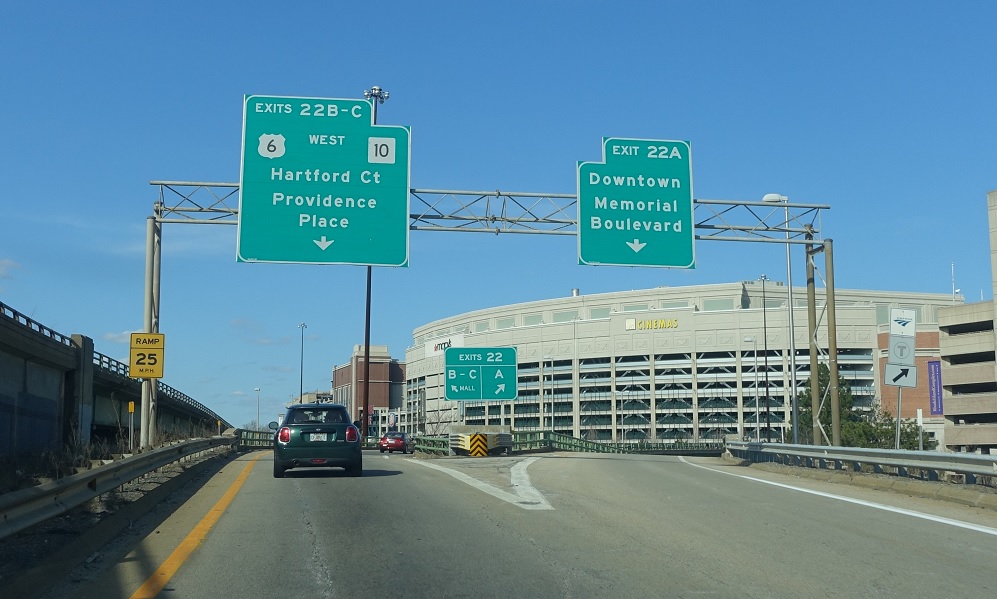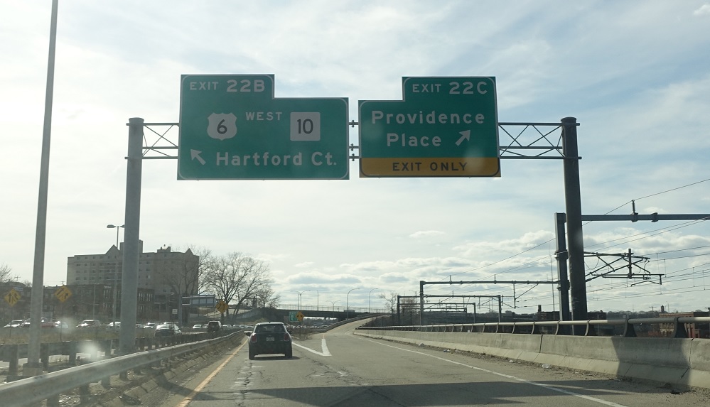 Exit for Providence Place. Keep left for US 6 west/RI 10 south.