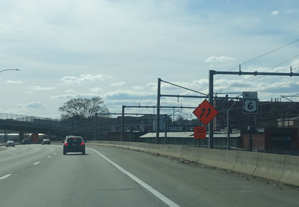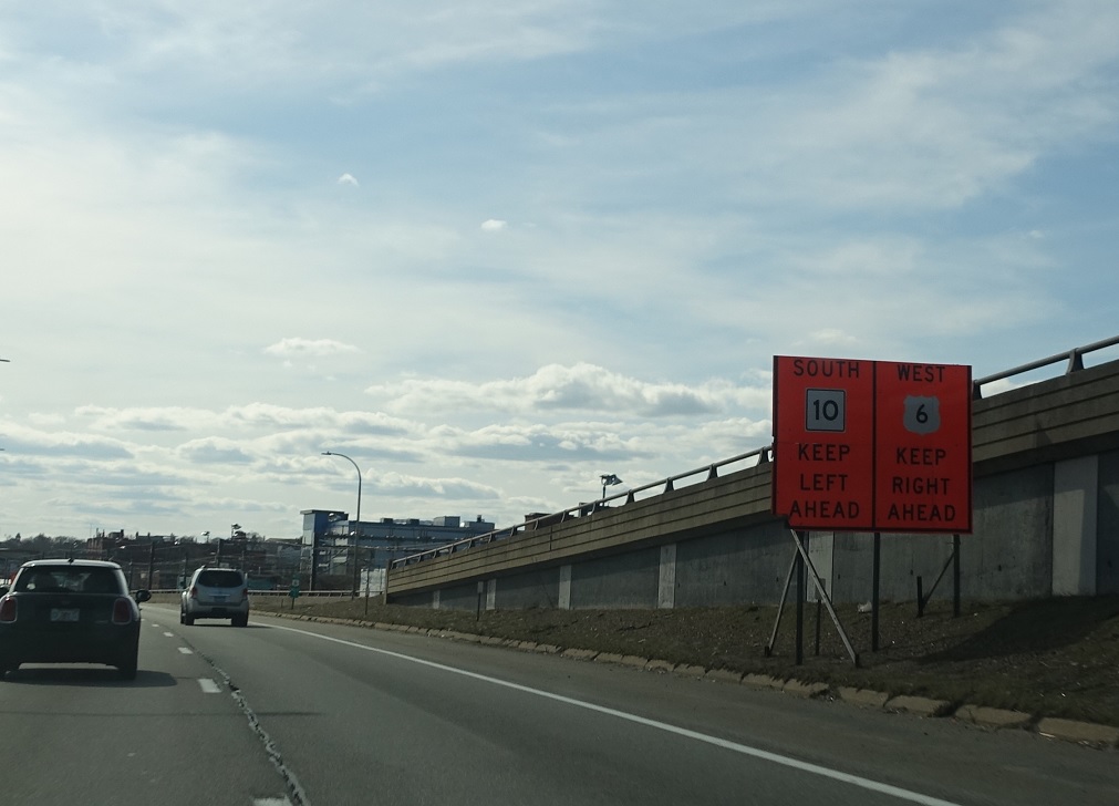 Shortly after US 6 joins RI 10, the two routes will prepare to split.