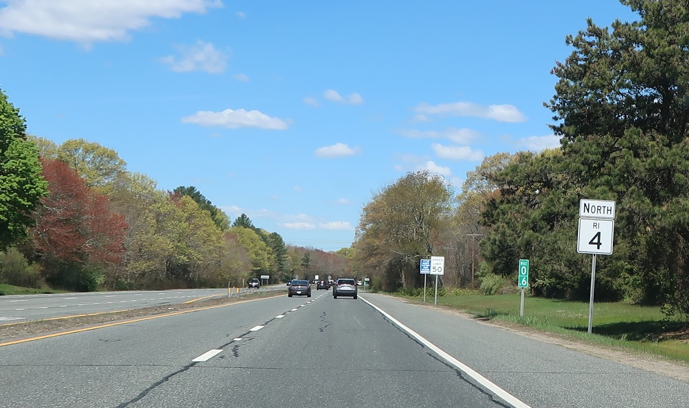 Reassurance shield as RI 4 begins. RI 4 is a bypass expressway for folks headed from I-95 down to the shore.